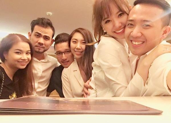 Trấn Thành ôm bà xã Hari Won tình tứ khi hội ngộ bạn bè ngày đầu năm.