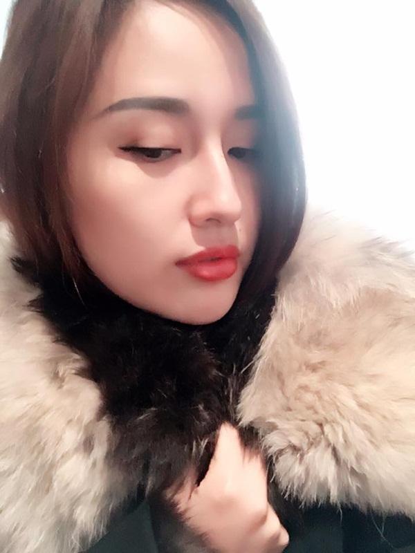 tháng cuối của thai kỳ, gương mặt của cô trông khá tròn trĩnh.
