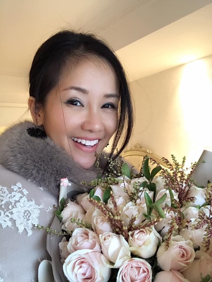 Hồng Nhung: "Sáng ra, hoa, bánh, quà, tin nhắn, lời chúc... thấy phấn chấn như "tuổi đời mênh mông"...! Cám ơn các bạn quí mến!"