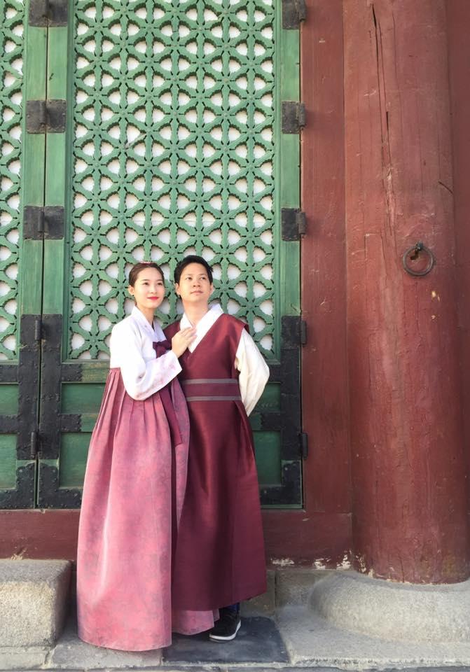 Hoa hậu Đặng Thu Thảo tông xuyệt tông trong trang phục truyền thống của Hàn Quốc e ấp dịu dàng bên bạn trai