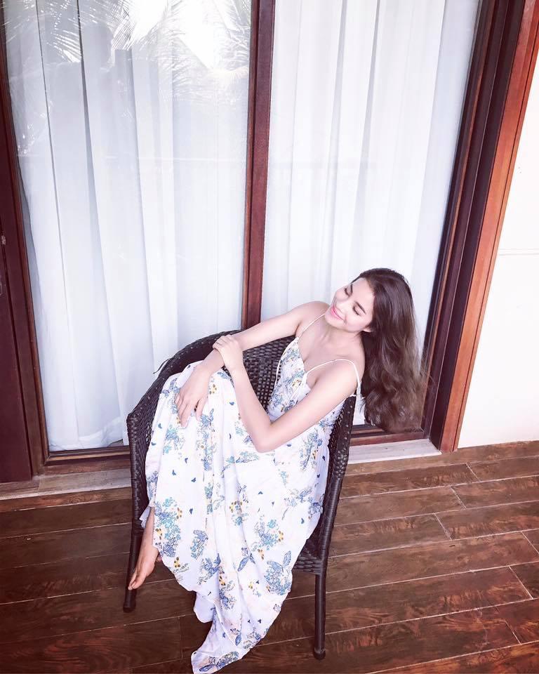 Phạm Hương thảnh thơi thư giãn: "Thức dậy ở nơi xa... bình yên chẳng đâu xa rời..."