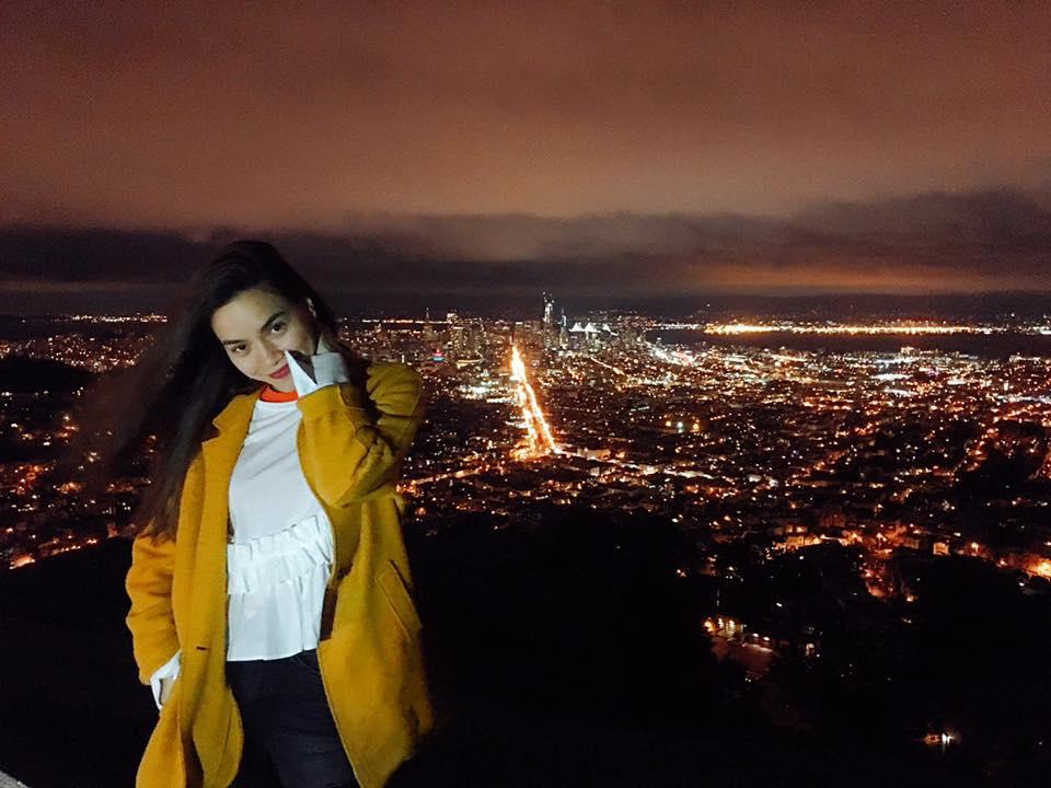 Hồ Ngọc Hà đang tận hưởng những giây phút thảnh thơi ngắm thành phố ban đêm ở nước Mỹ.