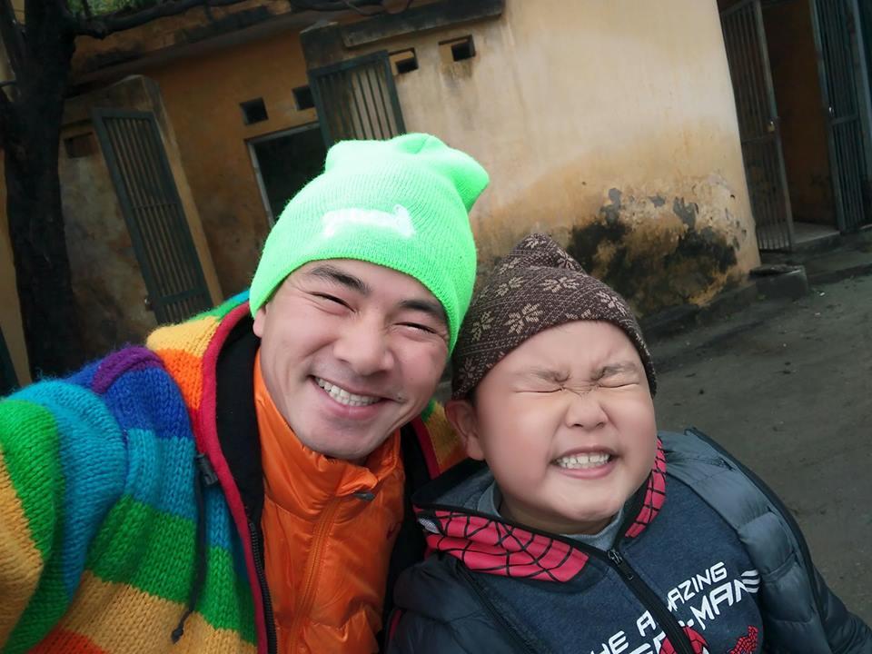 Biểu cảm tinh nghịch dễ thương của bố con Xuân Bắc