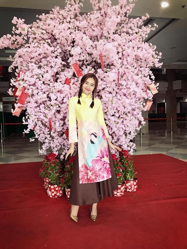 Ninh Dương Lan Ngọc diện áo dài điệu đà ngày Tết: "Nụ cười tràn đầy, gia đình sum vầy".