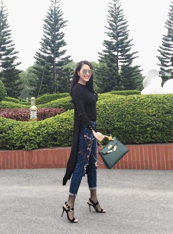 Hoa hậu Đỗ Mỹ Linh trẻ trung xuống phố đầu năm.