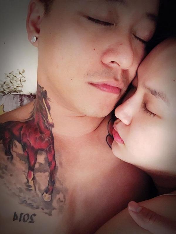 Tuấn Hưng cởi trần ôm vợ ngủ, không quên nhắn nhủ: "Ngủ ngoan nhé. Bố sẽ luôn ôm Mẹ và tất cả các con vào lòng như vậy. Hạnh phúc bình yên".