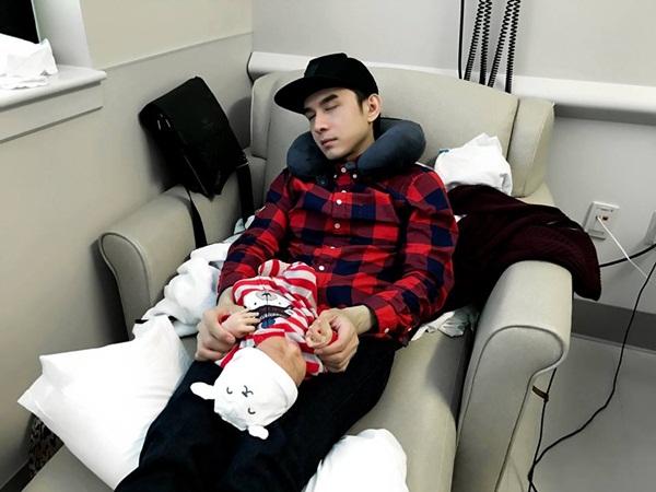 Khoảnh khắc đáng yêu của cha con Đan Trường khi ôm nhau ngủ gật.