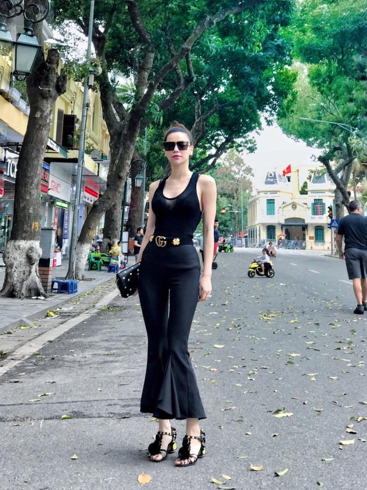 Hồ Ngọc Hà xuống phố, khoe 3 vòng với thời trang bó sát.