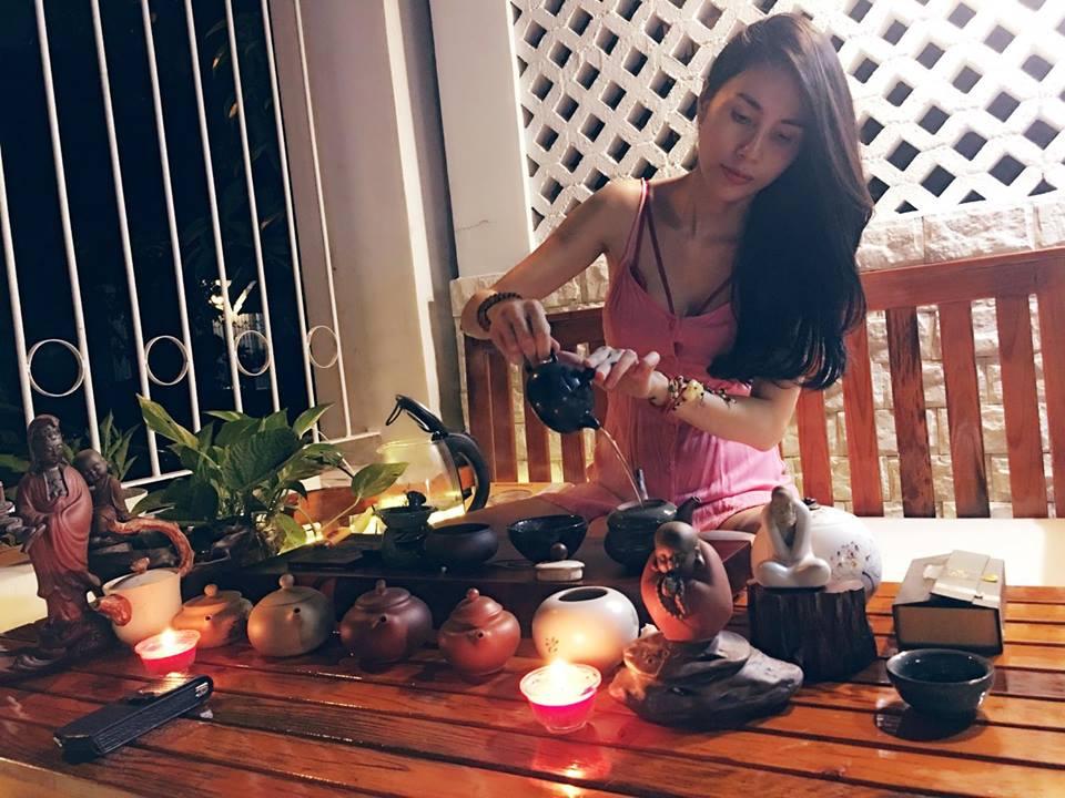 Giây phút bình yên thư giãn thưởng trà của vợ chồng Công Vinh - Thủy Tiên: "Khói nghi ngút bay lên, hương trà thơm lừng mũi, thấy cuộc đời nhẹ nhàng đến lạ, chả việc gì quan trọng vào lúc này. Sống chậm lại, yêu thương nhiều hơn. Thiền trà... buổi tối mát và an bình vô cùng".