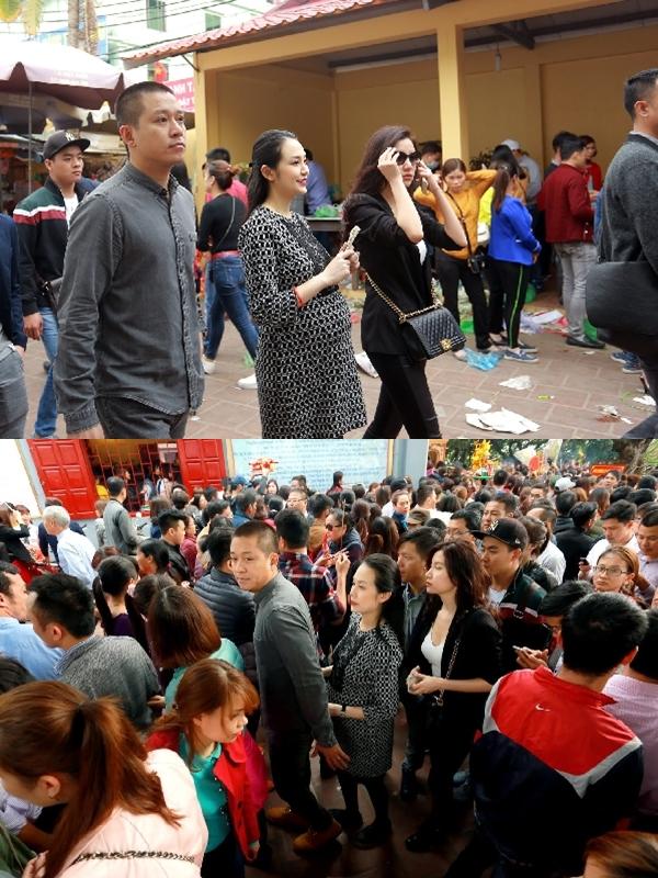 Tuy đang mang bầu bước sang tháng thứ 8 nhưng vợ Tuấn Hưng vẫn cùng chồng đi lễ tại Phủ Tây Hồ.