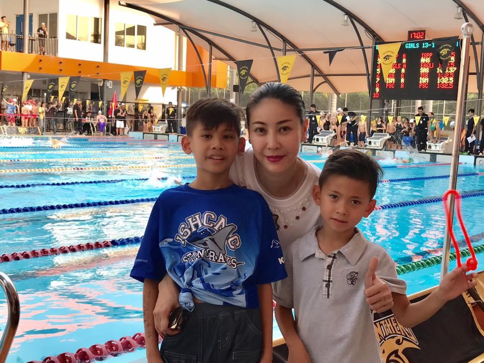 Hà Kiều Anh thích thú khoe thành tích của con trai: "Cả gia đình đi ủng hộ con trai lớn thi đấu giải bơi lội giữa các trường. Con thi thì mệt rồi nhưng mẹ hò hét và chờ đợi còn mệt hơn... Cũng may cuối cùng cũng ôm được giải an ủi cho mẹ đỡ buồn. Yêu con trai quá, ốm nhom ốm nhách mà bơi nhanh thấy thương".