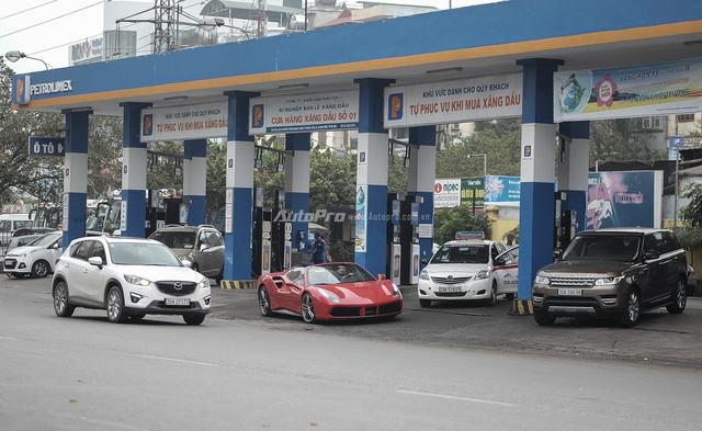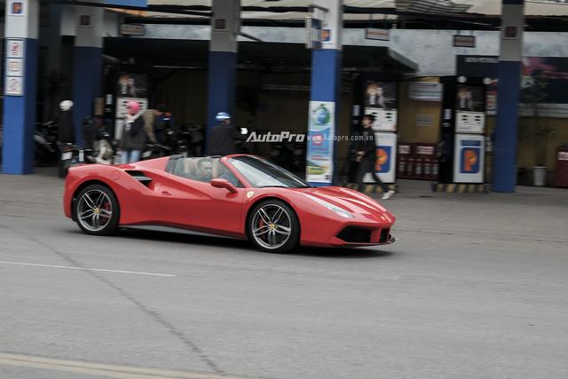 Sau khi đổ xăng, Ferrari 488 Spider tiếp tục chuyến đi của mình.