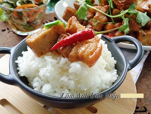 Từng miếng thịt kho thơm mềm phảng phất hương vị bia rất ngon và đậm đà. Món ăn tuy quen mà lạ, đặc biệt hao cơm vô cùng.