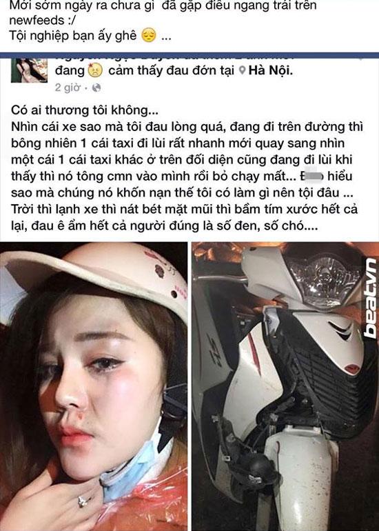 Mới đây, trên một diễn đàn mạng hình ảnh cô gái trẻ đăng ảnh selfie khi mình gặp tai nạn nhận được nhiều quan tâm và bình luận của cư dân mạng. Admin trang này viết: "Khổ, chia buồn với cô ấy thôi chứ biết làm sao, quả này cũng gần chục triệu chứ ít gì ..."