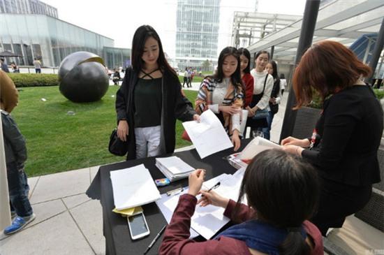 Các cô gái phải xếp hàng để được nộp hồ sơ dự thi.