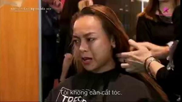 Ở Asia's Next Top Model, Mai Ngô gào thét, phản ứng dữ dội khi bị cắt tóc.