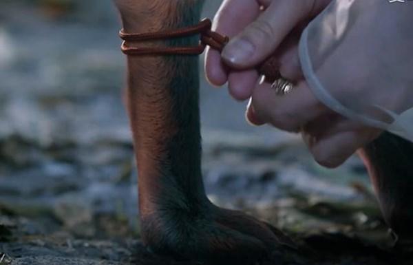 Bạch Thiển (Dương Mịch) buộc chiếc chuông vào chân trước của Phượng Cửu (Địch Lệ Nhiệt Ba) - lúc này