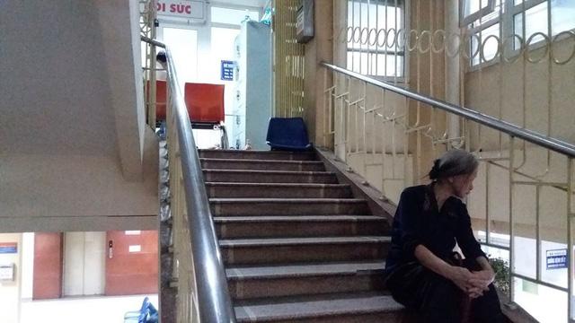 Ngồi vật vờ ngoài cầu thang khoa Hồi sức tích cực theo dõi tình hình sức khỏe của con trai, bà Diệp Thị Lan (70 tuổi, mẹ anh Đạt) thể hiện rõ nỗi lo âu, khắc khổ trên khuôn mặt.