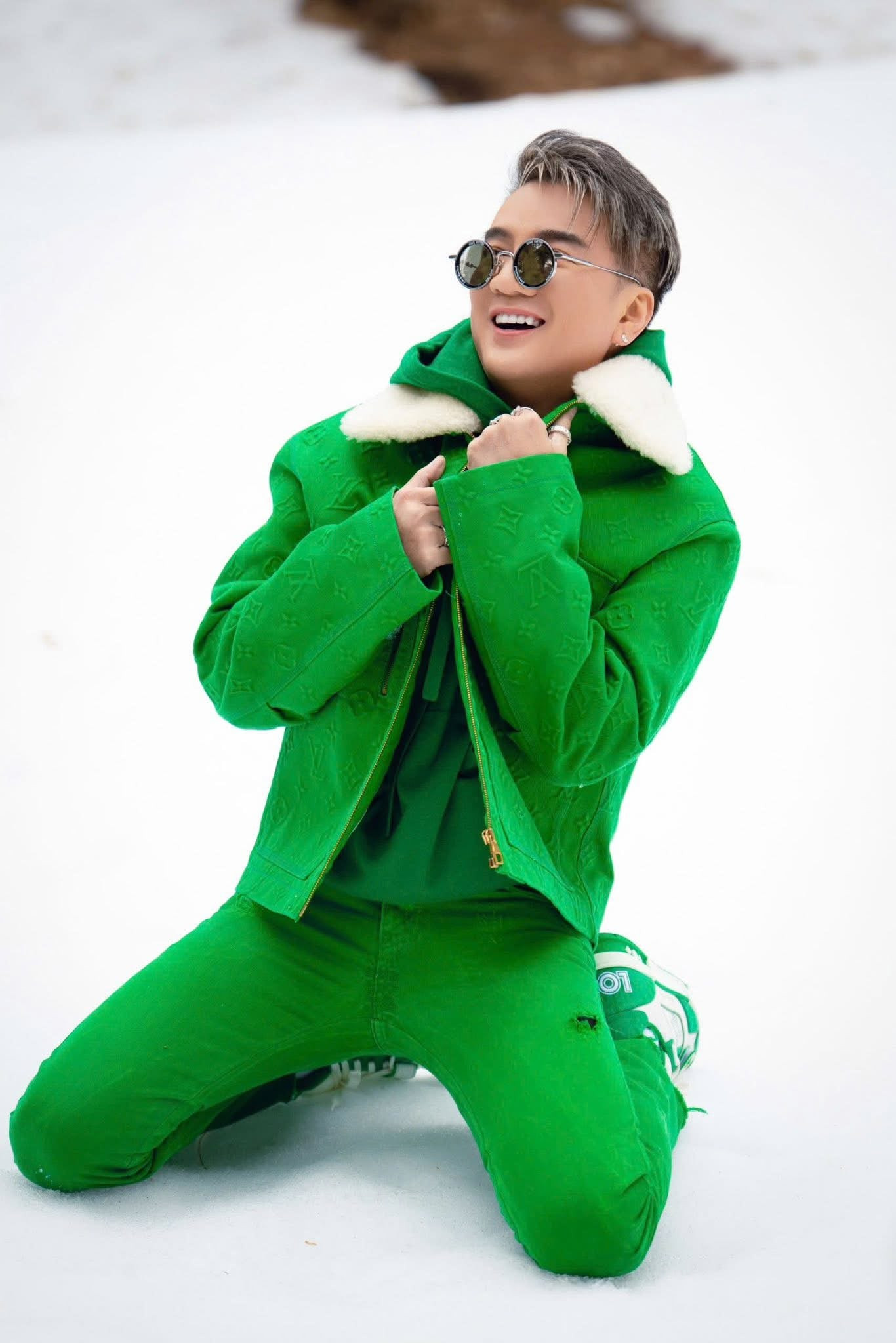 Ca sĩ Đàm Vĩnh Hưng chia sẻ hình ảnh nổi bật với set hàng hiệu giữa tuyết trắng.