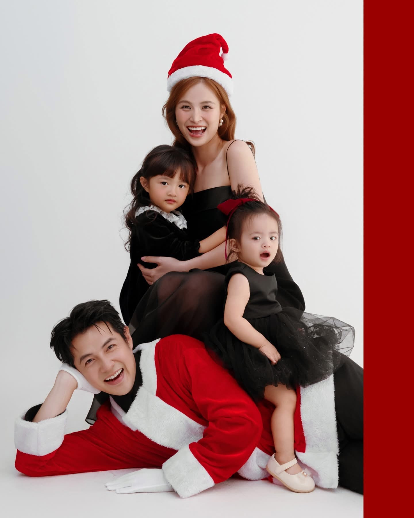 Bố 2 con Ông Cao Thắng còn hóa thân thành ông già Noel với trang phục đỏ truyền thống, nụ cười hiền hậu và ánh mắt tràn đầy yêu thương dành cho vợ con. Hình ảnh người bố quốc dân vui đùa bên hai cô con gái nhỏ khiến nhiều người không khỏi thích thú và ngưỡng mộ.
