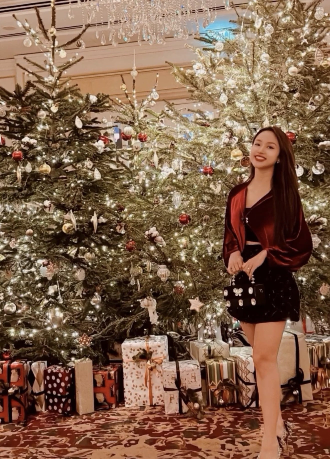 Thanh Vân Hugo chia sẻ hình ảnh gợi cảm, khoe đôi chan thôn gọn bên cây thông Noel rực rỡ.