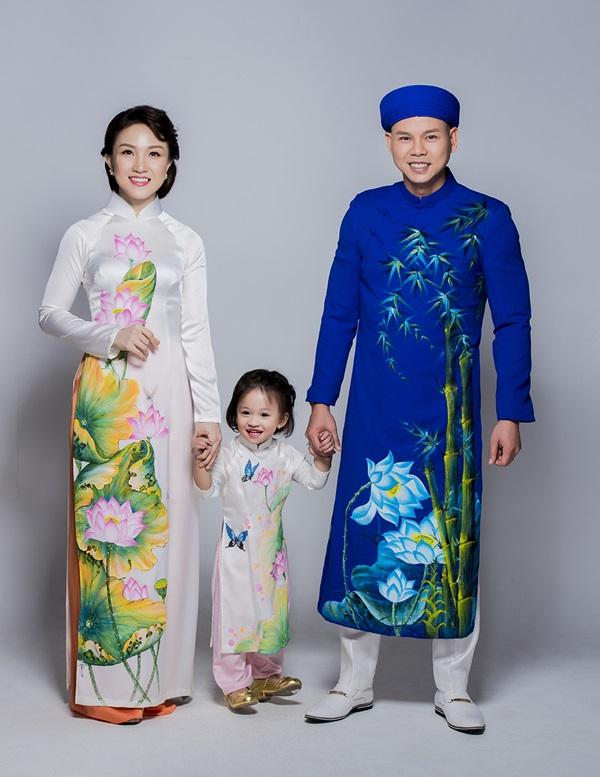 Cả gia đình chọn trang phục truyền thống áo dài để thể hiện ý tưởng nồng nàn