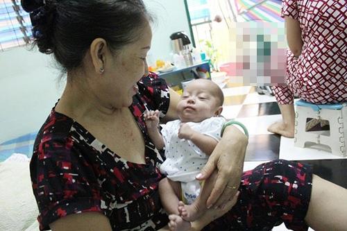 Bé Muội nhỏ bé trong vòng tay bà nội.