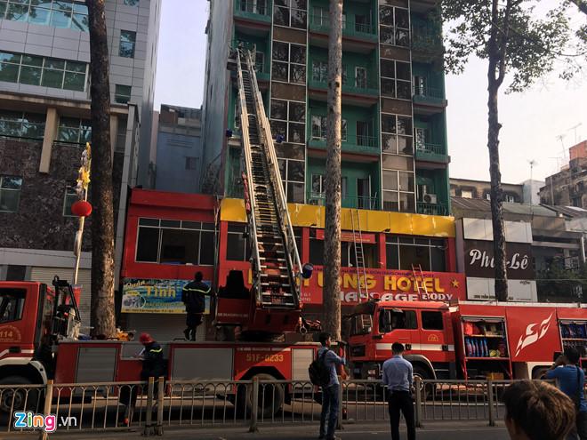 “Chúng tôi đã yêu cầu chi viện thêm từ Phòng cảnh sát PCCC quận 1 đến cùng dập tắt đám cháy và cứu nạn. Lực lượng PCCC đã triển khai 2 máy hút khói và nhiều vòi chữa cháy. Chúng tôi cứu được 19 người, trong đó có 11 người nước ngoài, không có trường hợp thương vong nào", thượng úy Trần Quang Sơn cho biết thêm.