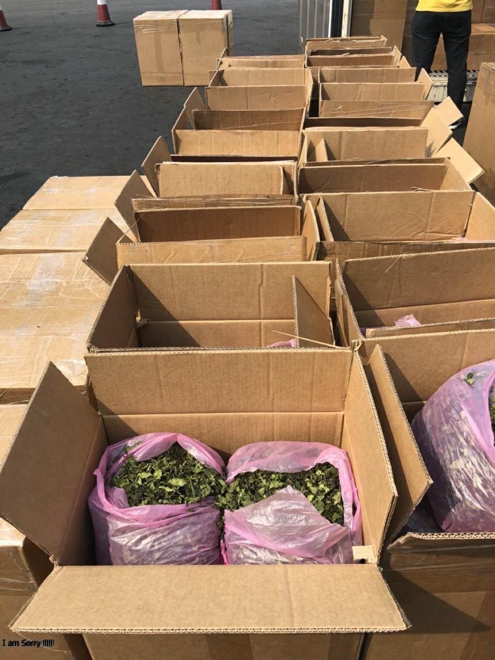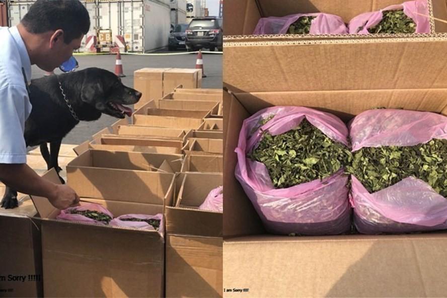 2.5 tấn lá Khát vừa được lực lượng chức năng TP Hải Phòng bắt giữ. Ảnh: HQCC.