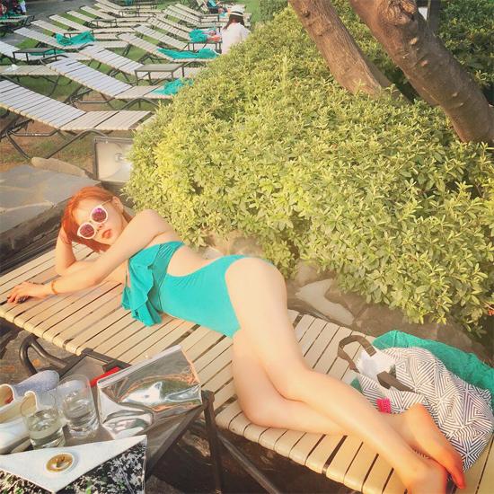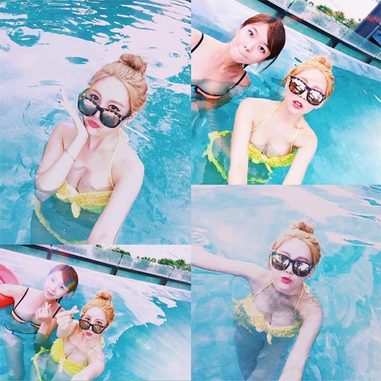 Hyolyn khoe đường cong chữ S nuột nà trong bộ bikini hai màu khác nhau.