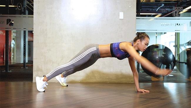 - Vừa giữ động tác plank đồng thời với từng tay lên phía trước, giữ cho hông cân bằng.