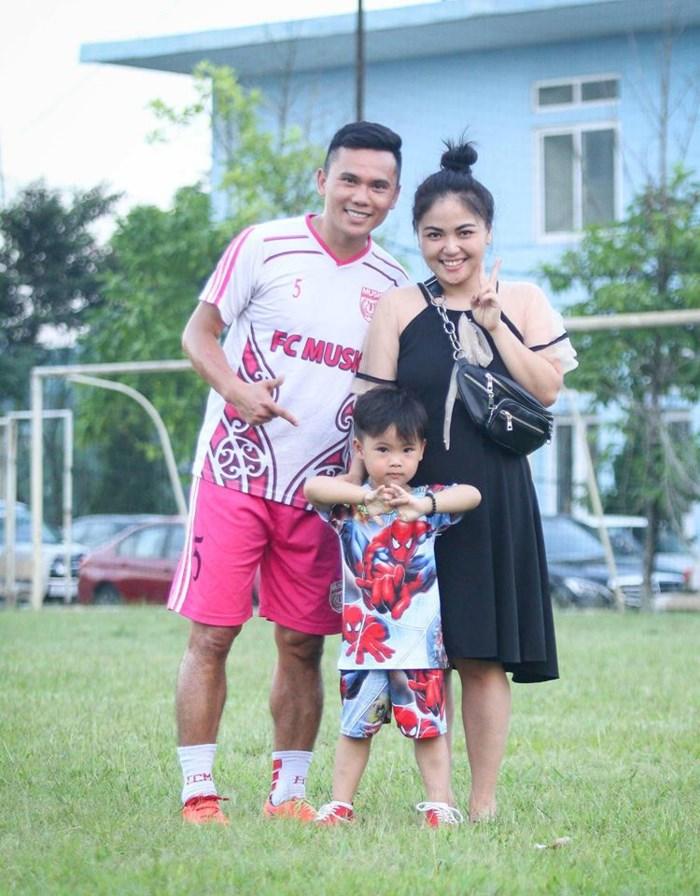 Tú Dưa chụp ảnh cùng bà xã và con trai