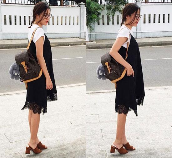 Nữ ca sĩ Văn Mai Hương nữ tính, duyên dáng và dịu dàng khi ra phố. Công thức mix đồ layer với giày mules, ba lô ngộ nghĩnh tạo nên cho cô vẻ ngoài đẹp riêng biệt.