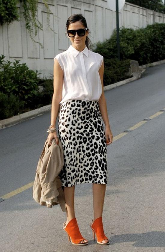 Siêu mẫu Úc Miranda Kerr tự tin khi sải bước với đôi giày mules hiệu Miu Miu, họa tiết da báo nổi bật.