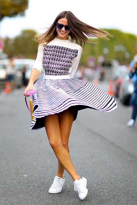 váy điệu đà, nữ tính khác nhau. Điều này cho thấy, sự tiện lợi của giày sneaker