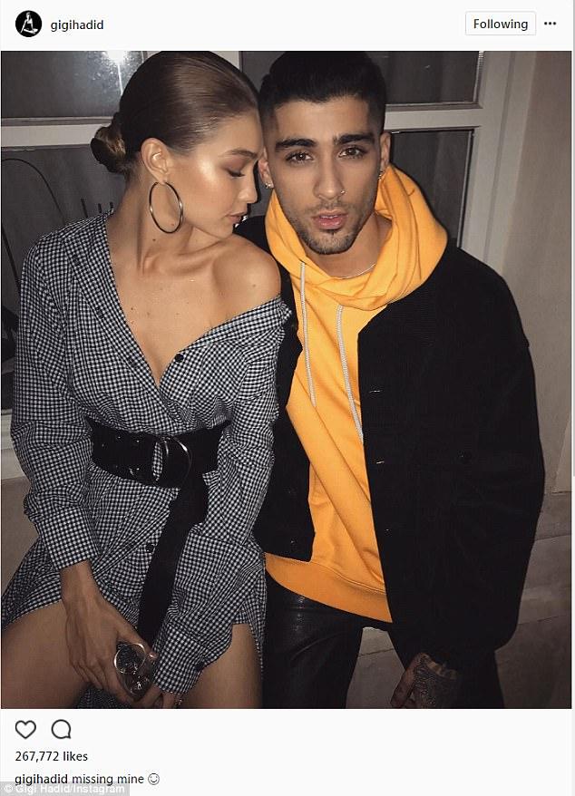 Gigi cũng không quên chia sẻ hình ảnh tình cảm bên Zayn kèm lời nhớ nhung bạn trai