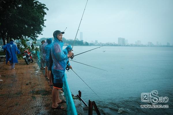 Người dân Hà Nội vẫn tranh thủ ra Hồ Tây câu cá.