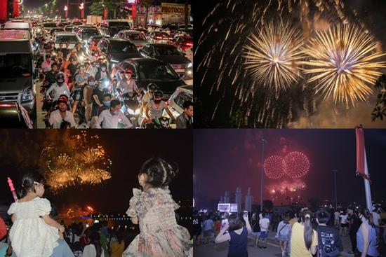 Nghìn người chen nhau chiêm ngưỡng pháo hoa rực rỡ trên đất Tổ
