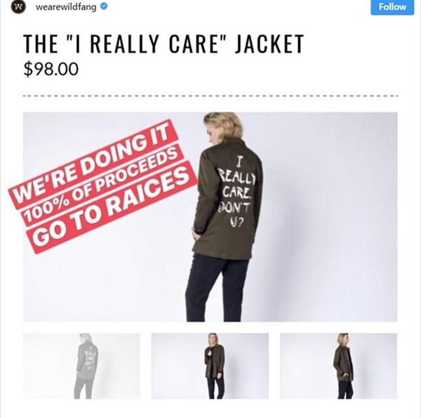 Thương hiệu Portland Wildfang đã cho ra mắt một bộ sưu tập giới hạn có tiêu đề "I really care" (Tôi thực sự quan tâm, còn bạn thì sao?). 100% số tiền thu được từ việc bán chiếc áo này sẽ được quyên cho những tổ chức chống phân biệt chủng tộc ở Texas nhằm cung cấp các dịch vụ pháp lý và nguồn lực cho người nhập cư.