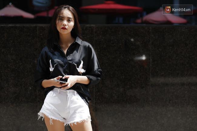 Cô bạn mix chiếc áo với jean shorts màu trắng tua rua vừa trendy lại vừa khoe được đôi chân thon dài.