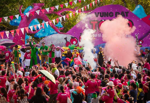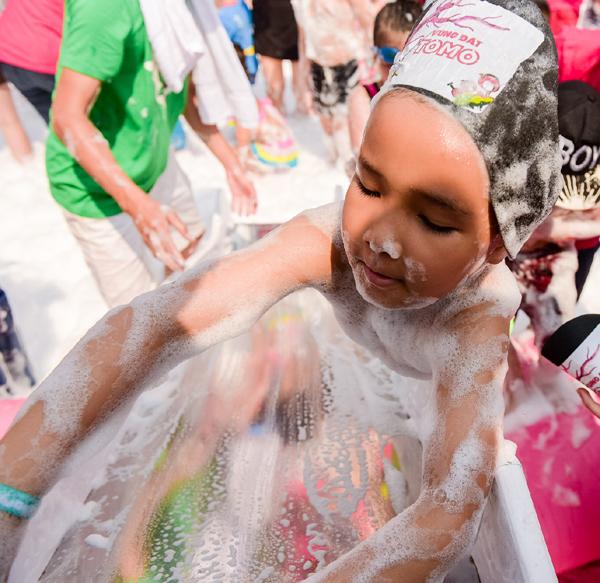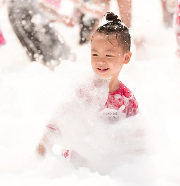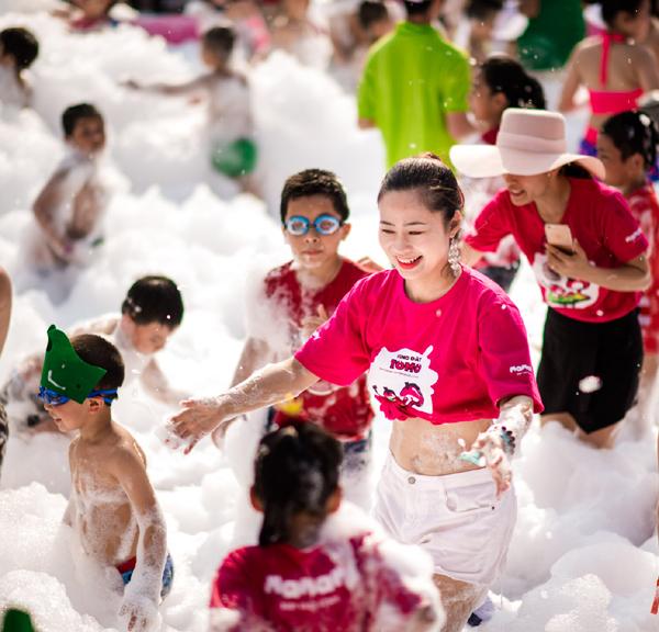 "Đại dương bột mát mịn" rộng khoảng 400 m2 hút hàng trăm em nhỏ tham gia.