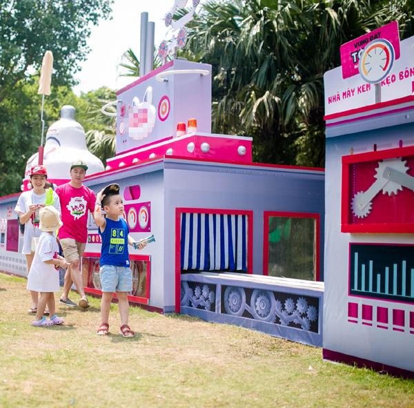 Trẻ tò mò với ngôi nhà kẹo bông.