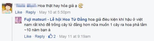 Giải thích về việc sử dụng hoa giả trong Lễ hội Hoa Tử Đằng lần này, một admin của page Fuji matsuri - Lễ hội Hoa Tử Đằng cho hay: "Điều kiện khí hậu ở Việt Nam rất khó để trồng cây tử đằng. Hơn nữa, muốn một cây Tử đằng ra hoa phải tầm 10 năm".