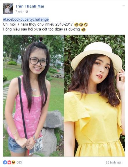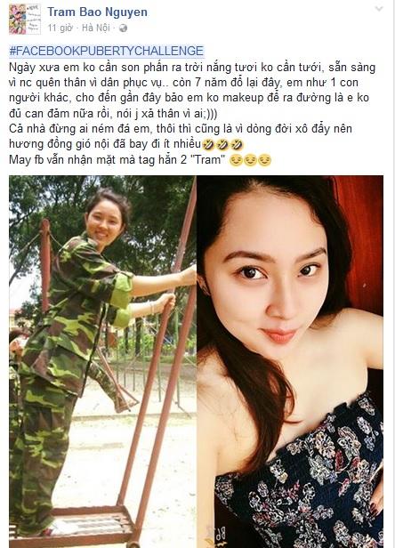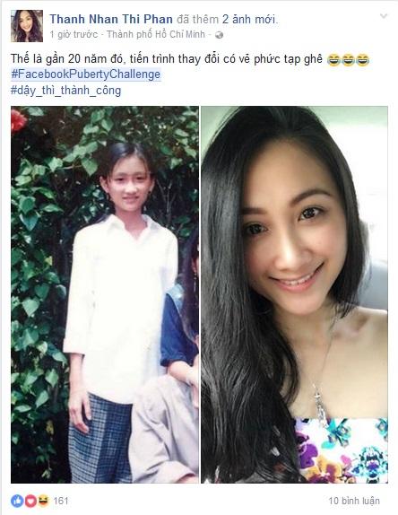 Hưởng ứng trào lưu "dậy thì thành công", những người nổi tiếng như Bảo Trâm Idol, Quốc Thiên, Hồ Đức Lợi, Võ Hoàng Yến, MC Thùy Minh... nhiệt tình chia sẻ hình ảnh của mình trên Facebook.