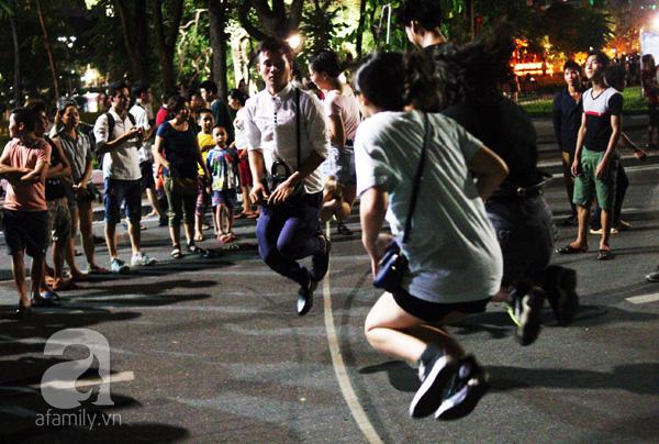 Không gian đi bộ quanh Hồ Gươm có rất nhiều hoạt động văn hóa, văn nghệ, trò chơi dân gian đã và đang kéo người dân quay lại với ký ức, với tuổi thơ. Giờ đây, họ đã thành người vợ, người chồng, thậm chí ông bà lại khéo léo bày trò cho những con cháu mình say mê với những trò chơi ấy.