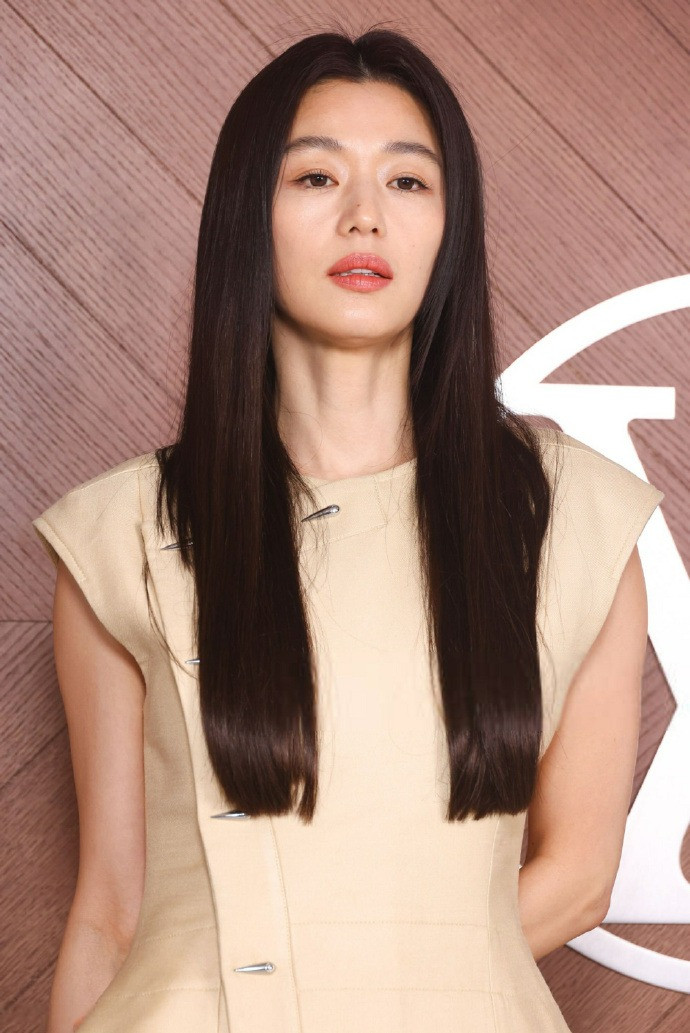 Xuất hiện tại sự kiện, nữ diễn viên diện trang phục phá cách với áo dáng peplum kết hợp chân váy bất đối xứng. Jeon Ji Hyun để tóc xõa, trang điểm nhẹ nhàng nhưng vẫn toát lên thần thái lẫn vẻ đẹp tự nhiên, hút hồn.