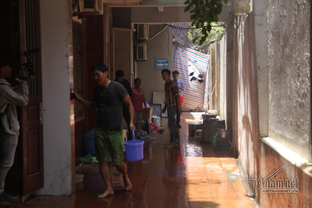 Phát hiện đám cháy bốc ra từ ngôi nhà chứa đồ điện, hàng chục hộ dân ngõ 37 đã thay phiên nhau dùng xô dội nước dập lửa ngăn không cho cháy lan sang đường dây diện.