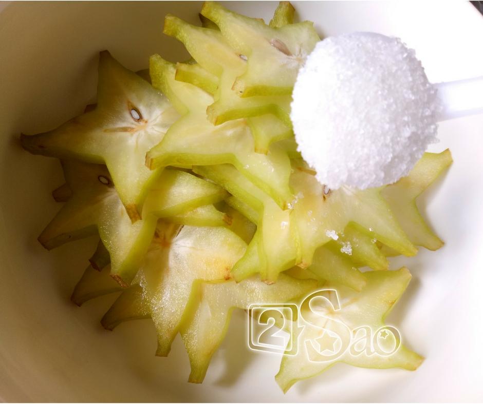 Bước 3: Hành tây bóc lớp vỏ rửa sạch rồi thái mỏng. Khê chua rửa sạch thái miếng mỏng rồi trộn với 1 thìa đường. 15 phút sau vớt khế ra vắt bỏ bớt nước đi.