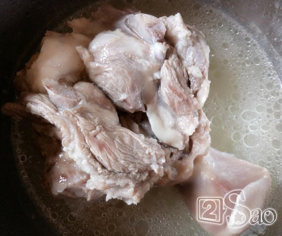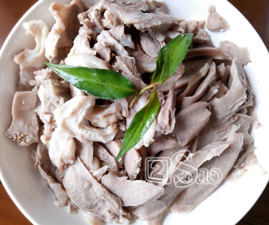 Bước 1: Lưỡi lợn mua về rửa thật sạch, dùng dấm hoặc rượu trắng để khử mùi hôi, cho vào nồi nước luộc sơ, đổ phần nước đó đi rồi cho thêm nước vào luộc chín, vớt lưỡi lợn ra để khô.