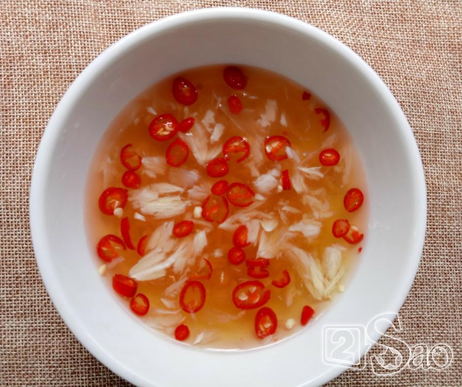 Gia vị: 1 thìa canh giấm, 1 thìa canh đường, 2 thìa canh nước mắm ngon, 2 thìa canh chanh cùng với ít muối.